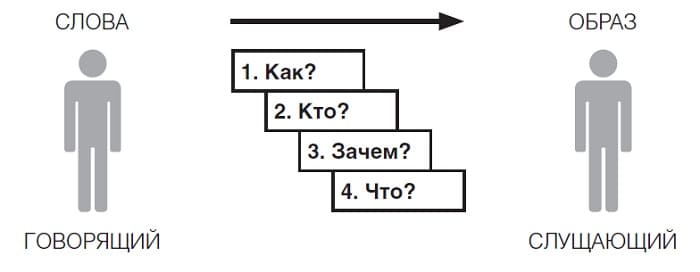 Человек говорящий приходит к пониманию «как» в последнюю очередь, а слушатель именно это воспринимает в первую очередь. Такое «порядковое» несовпадение делает коммуникацию достаточно сложным процессом, а нежелание (неспособность) учитывать это при подготовке коммуникации приводит говорящего к краху задуманного.