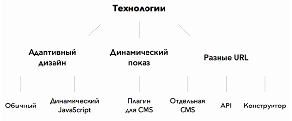 - При динамическом показе контент отображается с учетом типа устройства пользователя. Макет или контент легко настраиваются для конкретного устройства, изменения почти не влияют на отображение на других устройствах. Используется один и тот же URL, что позволяет пользователям легко делиться ссылками на контент. Но любые обновления на конкретной странице требуют их внесения и в версии для других устройств. Это приводит к определенным трудностям в управлении контентом. Подгонка отображения для каждого устройства иногда может означать, что пользователи будут по-разному видеть сайт в зависимости от того, на какой его версии они находятся.