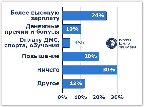 При этом сами руководители часто пытаются отговорить сотрудников от увольнения. 75% опрошенных рассказали, что у них был подобный опыт. Чтобы они остались в компании, начальство им предлагало: