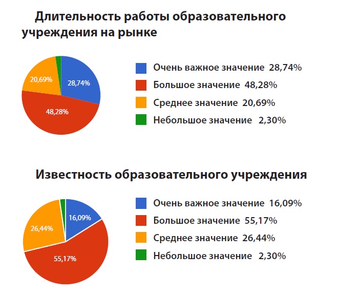 Итоги исследования показали, что одни из важнейших критериев доверия участников обучения – это возраст и известность бизнес-школы. Эти параметры важны для 77% и 71% респондентов соответственно.